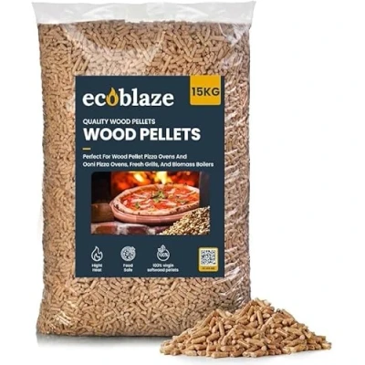 Ecoblaze 15kg Premium Wood Pellets for Pizza Oven 100% Natural Softwood Biomass Fuel Ooni, Uuni, Dellonda, Nero, Smokeless Fire Pits, BBQs & Pellet Smokers Cooking, Clean Burning High Heat