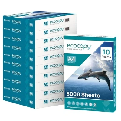 ECOCOPY A4 Printer Paper White Printing Sheet 5000 Sheets (10 Reams of 500) Multipurpose for Laser & Inkjet Printers Jam Free Copier Office, School Home Use