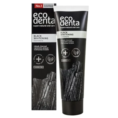 NATURAL INGREDIENTS: Ecodenta Activated Charcoal Toothpaste is made with 98% ingredients of natural origin for a clean, nature-inspired smile, for gentle yet effective oral care. ACTIVE INGREDIENTS: Black charcoal is well known for its whitening functions. Green tea extract fights plaque, decay and gingivitis. It also effectively combats bad breath. Salt prevents tartar from build-up Mint essential oil provides extremely long-lasting freshness. FUNCTIONS: Cleans and naturally whitens teeth, successfully wipes out plaque and provides extremely long-lasting freshness. SAFE, EFFECTIVE & DENTIST-APPROVED: Our Active Whitening Charcoal Toothpaste is professionally tested, vegan-friendly, and completely safe for daily use. FLUORIDE-FREE FORMULA: Made without fluoride, this activated charcoal toothpaste offers a natural alternative for effective teeth whitening.