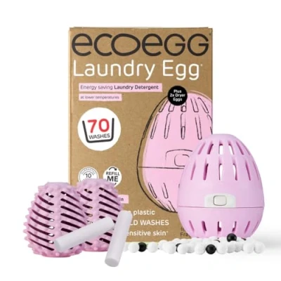 ๐งบ MAKE LAUNDRY A BREEZE: Simply pop an ecoegg Laundry Egg on top of the clothes in the drum. Designed to last for up to 70 washes, just refill with your choice of fragrance refill afterward. The ecoegg Dryer Eggs further simplify laundry by reducing tumble drying time by up to 28%. ๐ค HOW DOES IT WORK? The ecoegg Laundry Egg uses two types of mineral pellets and a small amount of detergent encased in a refillable egg to provide brilliant cleaning for both light and dark washes. The Dryer Eggs help separate laundry to allow better air circulation for faster drying. ๐ KINDER TO THE ENVIRONMENT AND YOUR POCKET: Reduce single-use plastic bottle consumption with no more powder, pods, gel, or liquid clogging up your washing machine. Additionally, reducing drying time saves energy and money. ๐ฅฐ PERFECT FOR SENSITIVE SKIN: Dermatologically tested and hypoallergenic, the ecoegg Laundry Egg contains no enzymes, making it ideal for those with allergies or susceptible to detergent rashes. The Fresh Linen scented Dryer Eggs are also gentle on sensitive skin. ๐ก INNOVATIVE AND ECO-FRIENDLY: Ecoegg is dedicated to creating innovative products that reduce single-use plastic, are environmentally friendly, and gentle on your skin and budget. The unique nodules on the Dryer Eggs leave your laundry baby soft, naturally softening clothes.