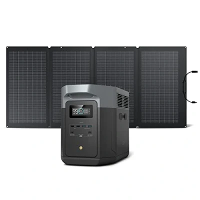 ECOFLOW DELTA 2 Max Solar Generator, 2048Wh Capacity LFP Battery Portable Power Station & 220W Panel, Up to 3000W AC Output, Fast Charging 0 80% in 53 mins For Outdoor, Camping, RV, Backup