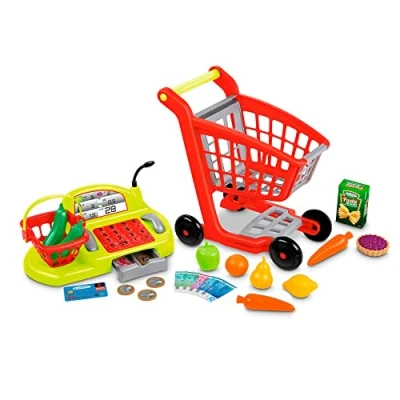 This large Ecoiffier supermarket set is a complete toy that includes cash register, shopping cart, shopping basket and various accessories Place food in the shopping cart or grocery basket and pay with coins, tickets or card at the cash register The cash register has a drawer like the real ones to store the coins Children will be able to simulate usual scenes such as shopping in the supermarket or paying for the purchase Suitable from 18 months Made in France, Manufacturer: Simba Toys