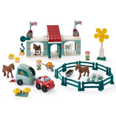HU SPIRIT! In this horse center your child will be able to take care of the horses, train them in the carousel, do obstacle races and transport them thanks to the van. What to imagine beautiful hisoires! A COMPLETE CENTER: This set includes 1 riding center to build, 1 pickup with his van, 4 horses, 2 characters, barriers to build his ride, 1 wind turbine and many accessories. The ABRICK range: it is intended for children from 18 months and includes 2 strong axes: construction and universes. PLAY TO GROW BETTER: It is by imitating adults and manipulating different toys that children learn to understand the world around them, to become more skillful and autonomous in everyday life. Toys from France. Ecoiffier is a family business that manufactures all its toys in France., Manufacturer: JOUETS ECOIFFIER