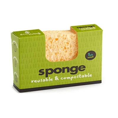 ecoLiving Compostable Sponge (Made from Cotton, Wood Pulp & Flax ) No Plastic Eco Washing up Kitchen with Scrub Non Scratch, Biodegradable (Single Larger Sponge)