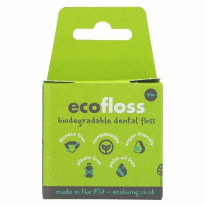 Ecoliving Dental Floss 50m is a vegan, GMO-free, and eco-friendly floss made from plant-based materials that reduces greenhouse gas emissions by 80% compared to regular floss. With a generous 50-meter length, it offers effective oral care while supporting sustainable living.