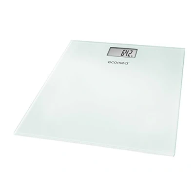 Ecomed PS 72E Digital Bathroom Scale made of Glass up to 150 kg / 330lb High Precision Sensors Step On Function White with LCD Display 23511