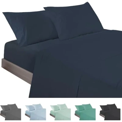 ECOMMERC3 3 Piece Sheet Set for 80 Bed Made in Spain with Fitted Sheet, Top and 1 Pillowcase Navy Color, Extra Soft Lightweight