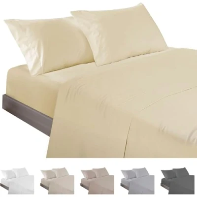 ECOMMERC3 4 Piece Bed Sheet Set 160 Made in Spain with Fitted Sheet, Top and 2 Pillowcases 45 x 85 cm Yellow