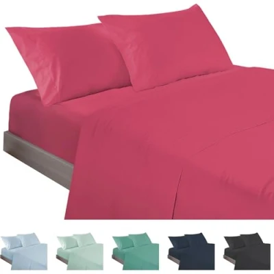 ECOMMERC3 4 Piece Bed Sheet Set 180 Made in Spain with Fitted Sheet, Top and 2 Pillowcases 45 x 100 cm Cherry Colour