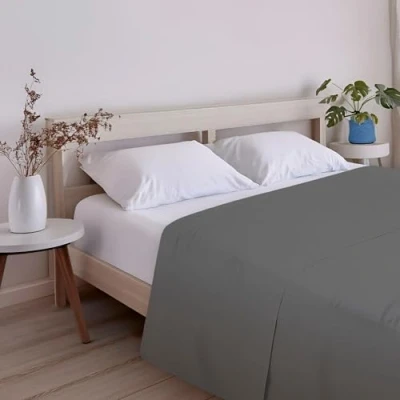 ECOMMERC3 Extra Soft and Comfortable Top Sheet for 160 cm Bed Anthracite Made in Spain, Breathable, Easy Care