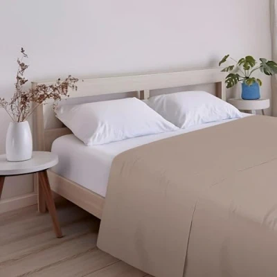 ECOMMERC3 Extra Soft and Comfortable Top Sheet for 180 cm Bed Earth Colour Made in Spain, Breathable, Easy Care