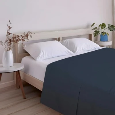 ECOMMERC3 Extra Soft and Comfortable Top Sheet for 90cm Bed Navy Made in Spain, Breathable, Easy Care