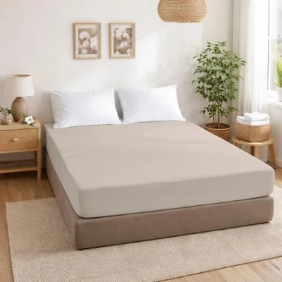 100% NATURAL PREMIUM COTTON - Made with high quality 100% pure cotton, this fitted sheet provides a soft and comfortable hand feel. It is ideal for those looking for natural and breathable materials, perfect for maintaining a pleasant temperature throughout the night, no matter the season. Perfect fit for high mattresses: Its elastic design all around the edge ensures a firm and slip-free fit on mattresses up to 30 cm in height. Forget about wrinkles and constant adjustments during the night, as this sheet fits like a second skin to the mattress. Breathable and temperature regulating: The cotton fabric is highly breathable, allowing proper air circulation. This helps prevent heat and moisture buildup, providing a cool and comfortable sleeping environment throughout the night. EASY CARE & STURDY - Designed to withstand multiple washes without losing its softness or elasticity, this fitted sheet is very easy to clean. Simply wash it in the washing machine at temperatures up to 40°C, and enjoy a sheet like new for longer. STYLISH & VERSATILE - Available in multiple colors and sizes, this fitted sheet pairs perfectly with any bedroom decor from modern to classic styles. Ideal for homes, guest rooms or even hotels looking for quality and comfort in their bedding.