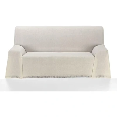 ECOMMERC3 Multipurpose Bedspread Size 130 x 180 cm for Sofa or Bed Foulard Multi Purpose Extra Soft Touch Ecru