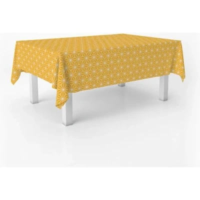 ECOMMERC3 Stain Resistant Tablecloth for Round Table, Size 140, Tablecloth, Extra Soft and Waterproof, Polygon Mustard Tree