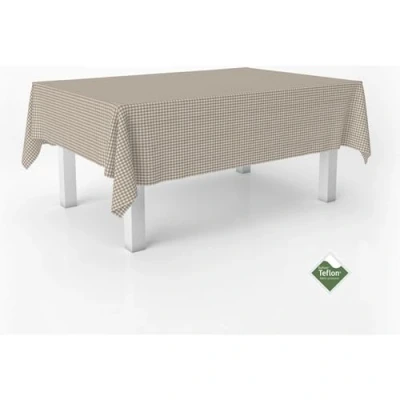 DURABLE STAIN & SPILL PROTECTION: This Teflon tablecloth is designed to resist stains and spills efficiently, meaning you'll be able to enjoy meals without worrying about ruining the appearance of your table. Whether red wine or ketchup is spilled, this tablecloth will take care of keeping your table spotless at all times. PREMIUM MATERIAL BLEND FOR A SUPERIOR EXPERIENCE - Made with a balanced combination of 50% cotton and 50% polyester, this tablecloth offers the best of both worlds. Cotton provides softness and a pleasant feel, while polyester adds strength and durability. The result is a tablecloth that combines comfort and performance to meet your most demanding needs. ADVANCED TEFLONED FINISH FOR EFFORTLESS CLEANING: Thanks to its state-of-the-art Teflon finish, this tablecloth forms a protective barrier that repels liquids and prevents the penetration of stains. This greatly facilitates cleaning as spills simply slide over the surface without leaving a trace. With our Teflon tablecloth, saying goodbye to stubborn stains is easier than ever. VERSATILITY AND ELEGANCE FOR ANY OCCASION - Whether it's for a casual family dinner or a special event, this tablecloth is the perfect choice for any occasion. Its classic and elegant design fits a wide variety of decor styles and adds a touch of sophistication to your table. With our Teflon tablecloth, you can impress your guests and enjoy an unparalleled dining experience at any time. QUALITY GUARANTEED CRAFTSMANSHIP: Each tablecloth is carefully crafted with attention to detail and expert craftsmanship to ensure exceptional quality. From reinforced stitching to flawless finishes, every aspect of our tablecloth is designed to offer you a product that lasts over time and maintains its beauty even after multiple washes. With our ready-made Teflon tablecloth, you can rest assured that you are investing in quality and style for your home.