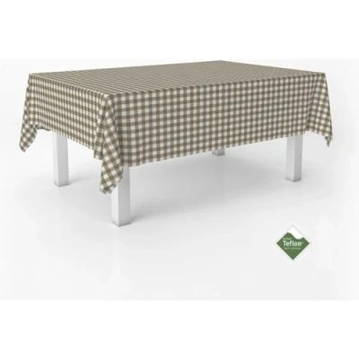 DURABLE STAIN & SPILL PROTECTION: This Teflon tablecloth is designed to resist stains and spills efficiently, meaning you'll be able to enjoy meals without worrying about ruining the appearance of your table. Whether red wine or ketchup is spilled, this tablecloth will take care of keeping your table spotless at all times. PREMIUM MATERIAL BLEND FOR A SUPERIOR EXPERIENCE - Made with a balanced combination of 50% cotton and 50% polyester, this tablecloth offers the best of both worlds. Cotton provides softness and a pleasant feel, while polyester adds strength and durability. The result is a tablecloth that combines comfort and performance to meet your most demanding needs. ADVANCED TEFLONED FINISH FOR EFFORTLESS CLEANING: Thanks to its state-of-the-art Teflon finish, this tablecloth forms a protective barrier that repels liquids and prevents the penetration of stains. This greatly facilitates cleaning as spills simply slide over the surface without leaving a trace. With our Teflon tablecloth, saying goodbye to stubborn stains is easier than ever. VERSATILITY AND ELEGANCE FOR ANY OCCASION - Whether it's for a casual family dinner or a special event, this tablecloth is the perfect choice for any occasion. Its classic and elegant design fits a wide variety of decor styles and adds a touch of sophistication to your table. With our Teflon tablecloth, you can impress your guests and enjoy an unparalleled dining experience at any time. QUALITY GUARANTEED CRAFTSMANSHIP: Each tablecloth is carefully crafted with attention to detail and expert craftsmanship to ensure exceptional quality. From reinforced stitching to flawless finishes, every aspect of our tablecloth is designed to offer you a product that lasts over time and maintains its beauty even after multiple washes. With our ready-made Teflon tablecloth, you can rest assured that you are investing in quality and style for your home.
