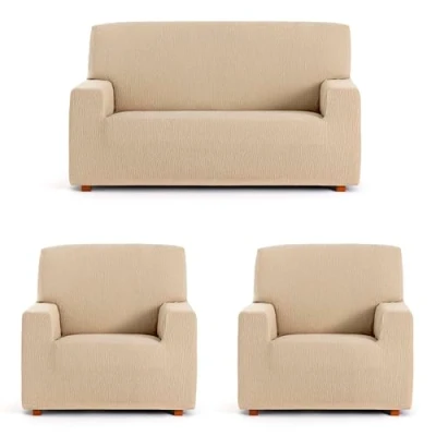 ECOMMERC3 Trio 3+1+1 Universal and Versatile Sofa Cover Beige Protector Easy to Install for Back, Seat Arms