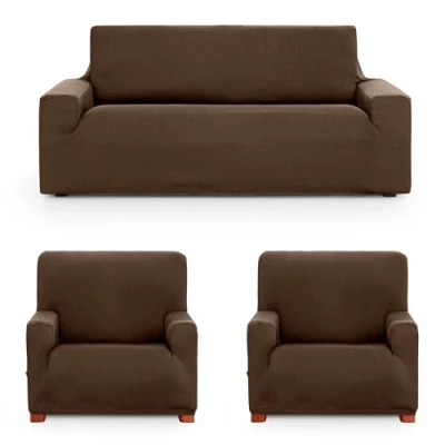 ECOMMERC3 Trio 3+1+1 Universal and Versatile Sofa Cover Brown Protector Easy to Install for Back, Seat Arms