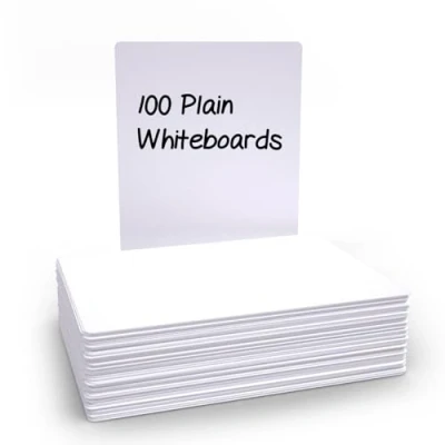 📏 Pack of 100 A4 Whiteboards – Plain, double-sided dry-wipe boards designed for classroom, group, or home learning use. ✍️ Durable & Tear-Resistant – Built to withstand regular handling, making them reliable for daily activities. 🔄 Reusable & Eco-Friendly – Wipe clean for repeated use, reducing paper waste in schools and at home. 🎓 Versatile Learning Tool – Ideal for maths, spelling, drawing, brainstorming, problem-solving, and more. 👩🏫 Lightweight & Easy to Use – Perfect size for students of all ages to handle comfortably during lessons.