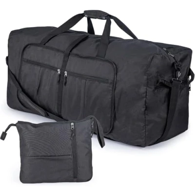 Ample 120L Storage with Organized Compartments:Designed for extended trips and active lifestyles, this generously sized duffel (85x40x35cm) includes a roomy main section, several outer pockets, and a dedicated ventilated shoe compartment to isolate footwear from clothing. It’s an excellent choice for week-long getaways, sports activities, or as supplementary luggage when extra storage is needed. Lightweight and Packable for Easy Storage:Weighing a mere 0.8kg, this bag can be folded compactly to 36x25cm, making it simple to tuck inside larger luggage or a drawer. Constructed from water-resistant and tear-proof 600D polyester, it’s both easy to maintain and built to last, with strengthened seams and reliable metal zippers. Adaptable Carrying Options:Equipped with a cushioned and adjustable shoulder strap, top carry handles, and a rear passthrough for securing over suitcase handles, this bag offers multiple ways to transport it. Carry it over the shoulder, by hand, or attach it to rolling luggage—perfect for air travel, gym visits, or weekend adventures. Practical and Secure Elements:Expandable outer pockets offer added room for frequently used items like keys or wallets, and a hidden zippered pocket helps protect important belongings. The breathable shoe section aids in reducing moisture and odor, ideal for fitness enthusiasts or travel. Ideal for Various Uses:Suitable as an overnight bag, outdoor adventure pack, moving day organizer, or even for storing off-season apparel, this duffel combines versatility and resilience for a wide range of situations.