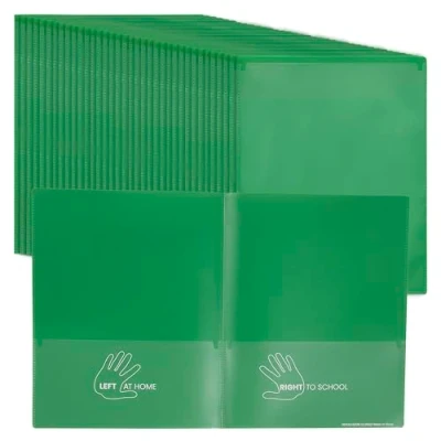 ECR4Kids MessageStor 2 Pocket Parent Teacher Classroom Communication Folder, Flexible Plastic Folder with Pockets, Letter Size Paper, 36 Piece Set, Green