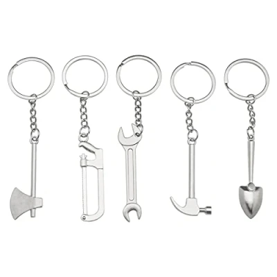 ECSiNG 5Pcs Simulation Tool Keychain Wrench Key Rings Metal Shovel Keyrings Alloy Decorative Keychains for Women Men Silver