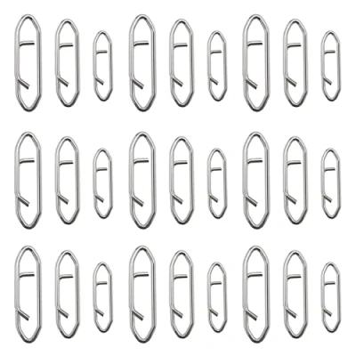 Large Size: 30x8mm; Medium Size: 25x6mm; Small Size: 18x5mm. The pulling force of large, medium and small size quick change fast link is 50KG/110LB, 32KG/70LB and 20KG/44LB respectively. Package includes 60pcs(large size, medium size, small size, 20pcs each size) quick change fast link, enough quantities for your daily demands. Great for lightweight freshwater fishing and heavy duty saltwater fishing. These hanging snaps are made of stainless steel material, corrosion-resistant, wear-resistant, impact-resistant, sturdy and durable, and has a long service life. Unique one-piece design provides easier way for changing lures and baits. Quickly attach lures, rigs, and weights in a second. Pointed end design keeps fishing line and lure stably on when jigging without coming off and reduces the snags on weeds significantly; Double buckle ensures durability and security, which also allows more action in the lure presentation to fishes.