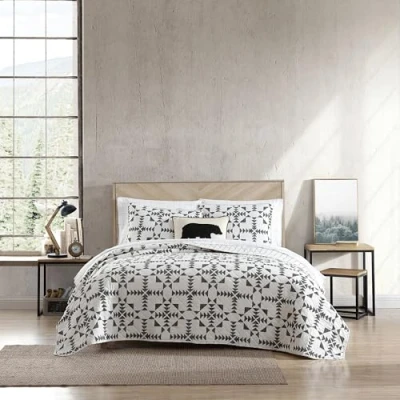 Eddie Bauer Cotton Reversible Bedding with Matching Sham, Home Decor for All Seasons, Arrowhead Charcoal, Queen