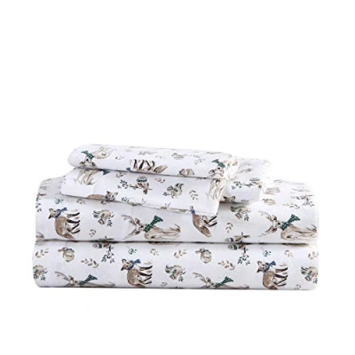 Eddie Bauer Queen Sheets, Cotton Flannel Bedding Set, Brushed for Extra Softness, Cozy Home Decor (Woodlands Friends, Queen)