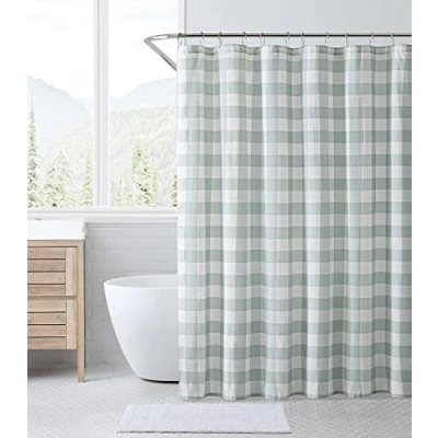 Eddie Bauer Shower Curtain, Lightweight Cotton Bathroom Decor, Buttonhole Top (Cabin Plaid Green, 72" x 72")