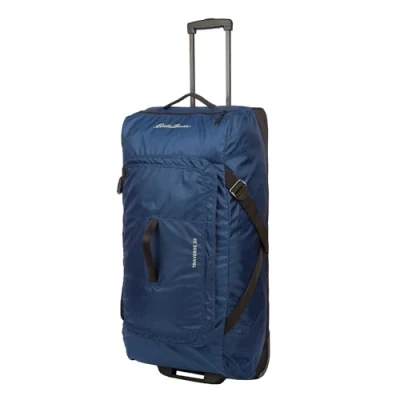 Eddie Bauer Traverse 32 Rolling Duffel Bag Made from Ripstop Polyester with Telescoping Handle, Medium Indigo, One Size