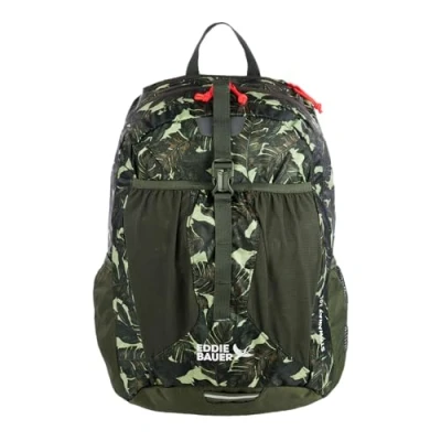 Lightweight & Comfortable: Designed for all-day wear with a mesh back panel and padded straps. Includes a laptop sleeve and hydration bladder portal for added functionality. Efficient Organization: Features two mesh side pockets for water bottles or essentials, keeping your gear secure and accessible during adventures. Packable Design: Folds into its own pocket for easy storage and transport. Stowed dimensions: 9" x 8" x 2.5". Water-Repellent Protection: Made of durable ripstop polyester with StormRepel WR finish to shed moisture and keep your essentials dry. Adventure-Driven Innovation: Dimensions: 19" x 12" x 9", Volume: 30L. Ideal for travel, hiking, or daily use, with Eddie Bauer's signature blend of style and sustainability.