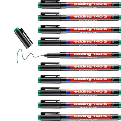 edding 140 S permanent pen green 10 pens round nib 0.3 mm for writing on glass, plastic, foils and smooth surfaces permanent, quick drying, smudge proof waterproof