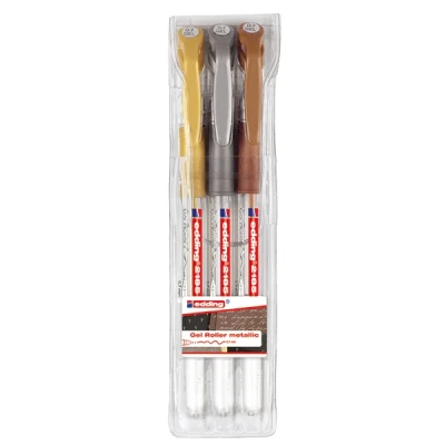 edding 2185 gel roller white, gold, silver (metallic) set of 3 0.7 mm pen for writing, drawing, colouring mandalas, bullet journals glitter pen, colour