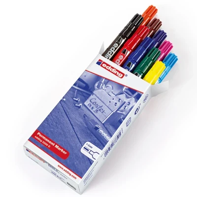 edding 2200 C permanent marker multi coloured box of 10 pens chisel nib 1 5 mm quick drying pen waterproof, smudge proof for cardboard, plastic, wood, metal, fabric