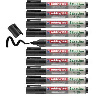 edding 29 Ecoline whiteboard marker black box of 10 pens chisel tip 1 5 mm pen dry wipe for whiteboards, flipcharts, pinboards, memo boards sketchnotes refillable