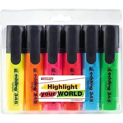 edding 345 highlighter set of 6 chisel nib 2 5 mm ideal for bright markings and highlighting text passages notes