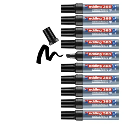 edding 365 whiteboard Marker Black 10 pens Chisel Nib 2 7 mm for whiteboard, Glass, Writing Board, flipchart can be Wiped Off Dry and Without Leaving Residue, Does not Out