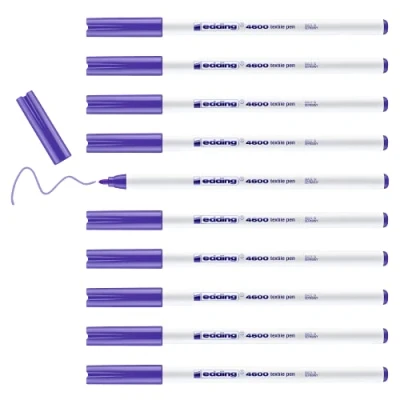 Fabric marker for long-lasting, wash-resistant results on almost all light-coloured fabrics, such as cotton, silk and linen The box contains 10 fine pens for fabric in neon violet The results are wash-resistant up to 60° C; heat-fix by ironing (without steam); the ink in the markers is extremely lightfast, low-odour and quick-drying For decorating, fabric lettering and writing on fabrics, such as kids’ T-shirts, cushions and fabric bags; the fine nib is ideal for drawing fine, precise lines The edding fabric markers and pens are available in 20 vibrant colours; check out the edding 4500 textile marker for colouring in