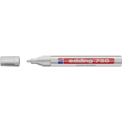 Paint marker for drawing, writing and marking on smooth and dark surfaces such as glass, plastic, metal; opaque ink for long-lasting results 1 paint marker in silver The lacquer-like ink dries quickly; lightfast and heat-resistant up to 400 °C, visible up to 1000 °C - ideal for hot metal; toluene and xylene free High-quality round nib for precise and highly permanent writing; suitable for inside and outside use; ideal for reliable and highly visible marking The edding 750 paint marker is available in 14 colours; matching replacement tips available; other stroke width available as edding 751 and edding 780