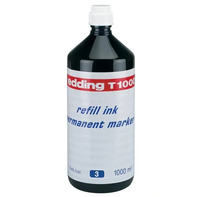Edding T1000 Permanent Marker Refill Ink is the eco-friendly solution for extending the life of your favourite Edding permanent markers. Designed for easy and mess-free refilling, this high-quality ink ensures vibrant, long-lasting colour on a wide range of surfaces.. Refillable Convenience: Specially formulated for use with Edding permanent markers, reducing waste and saving money.. Multi-Surface Use: Delivers reliable, permanent results on materials such as plastic, metal, glass, cardboard, and more.. Quick-Drying & Smudge-Resistant: Ink dries fast for clean application and is resistant to water, fading, and wear.. Large Capacity: Each refill bottle provides multiple top-ups, ideal for frequent marker users.. Eco-Conscious Choice: Supporting sustainability by reducing the need to replace whole pens.. Keep your markers performing at their best with Edding T1000 refill inks—perfect for offices, schools, studios, or workshops.