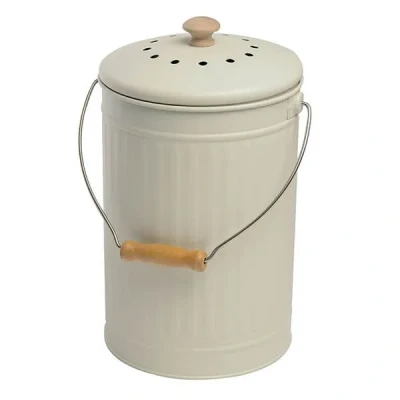 This chalk coloured compost pail is made from powder coated stainless steel with a stainless steel and wood handle for easy carrying.The compost pail includes carbon filters for absorbing bad odours keeping your kitchen smelling fresh.Capacity 7 litres.