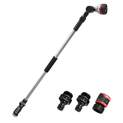 6 unique spray patterns including Turbo, Jet, Mist, Soaker, Flat, and Shower to meet all your watering and cleaning needs Powerful, twisting Turbo spray removes mud and dirt for faster cleaning while using less water Extends up to 66 inches and locks in place with a dual clamp to reach difficult areas like gutters, windows, or siding Aluminum and zinc alloy construction for a lightweight design with added durability for years of use 270-degree adjustable head to water precisely where you need it without bending or straining Easy-to-use thumb control to turn the water on and off and control the volume of water flow with one simple movement Honeycomb grip provides extra control in wet conditions Soft dial ring protects against damage during everyday use and offers easy pattern changes to switch from jet to shower as you move around the yard Quick Connect Starter Set for quick connection and disconnection fits standard U.S. garden hoses and watering tools; the secure twist-and-lock mechanism prevents accidental disconnection and water stop feature allows tool changes with the water on, Weight: 1.212 pounds, Manufacturer: Eden