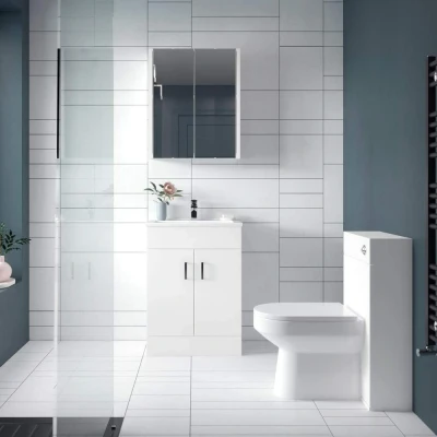 Eden Floor Standing 2 Door Vanity Unit with Basin 500mm Wide Gloss White Nuie