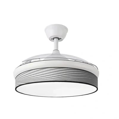 Enjoy **superior comfort** with this fan. [Save Energy] (DC 72W) and adjust the light (3000K-6000K) from the remote control. [DC Fan 72W] [White & Grey], [3 Blades], [7200lm], [Adjustable Temperature (3000K-6000K)], [Remote Control], [Memory], [Timer]. Fan DC 72W [White and Grey], 3 Blades. [Easy to use] with remote control. [Memory and Timer] (Temperature 3000K-6000K).