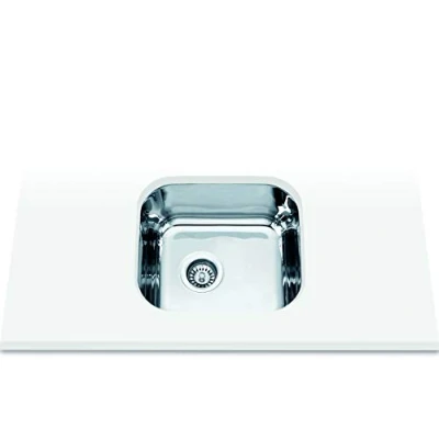 304 stainless steel undercounter sink 1 x Round Bucket Sink without tap hole Depth of bucket 18 cm. Installation on furniture of 45 cm. Dimensions (L x W x D): 380 x 440 x 180 mm Drain with valve round basket 3 1/2". Accessories included: round valve, siphon and overflow tube, Manufacturer: Edesa