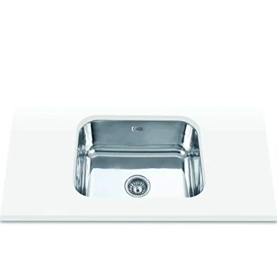 304 Stainless Steel Undercounter Socket Sink 1 square bucket Sink without tap hole Depth of bucket 18 cm. Installation on furniture of 60 cm. Dimensions (L x W x D): 540 x 440 x 180 mm Drain with valve round basket 3 1/2". Accessories included: round valve, siphon and overflow tube, Weight: 8.267334825 pounds, Manufacturer: Edesa
