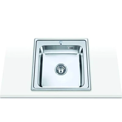 Stainless Steel Worktop Sink 304 1 x Square Container Sink with Tap Hole Basin Depth 20cm Installation in 50 cm base unit dimensions (L x W x D): 500 x 500 x 190 mm drain fitting with round basket valve 3 1/2 inch included accessories: round valve, tap caps, siphon and overflow pipe, Weight: 7.5839018128 pounds, Manufacturer: Edesa