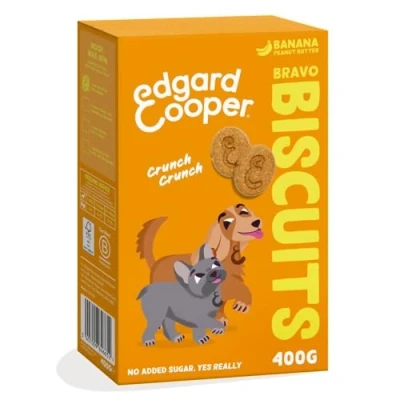 Natural dog treats, plant based dog biscuits packed with banana and peanut butter Suitable for all adult senior dogs: small and large breeds, sterilised and active dogs Fresh ingredients, noaddedsugar, natural treat for all dogs Designed to keep your dog doing the things that make you smile Natural ingredients you can pronounce, gently baked to seal in all the taste and goodness Feel good about the food you’re serving, no over processed or dried meat Switch to Edgard Cooper by gradually increasing the amount of the new food while decreasing the old brand over 10 days.